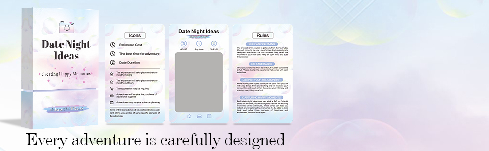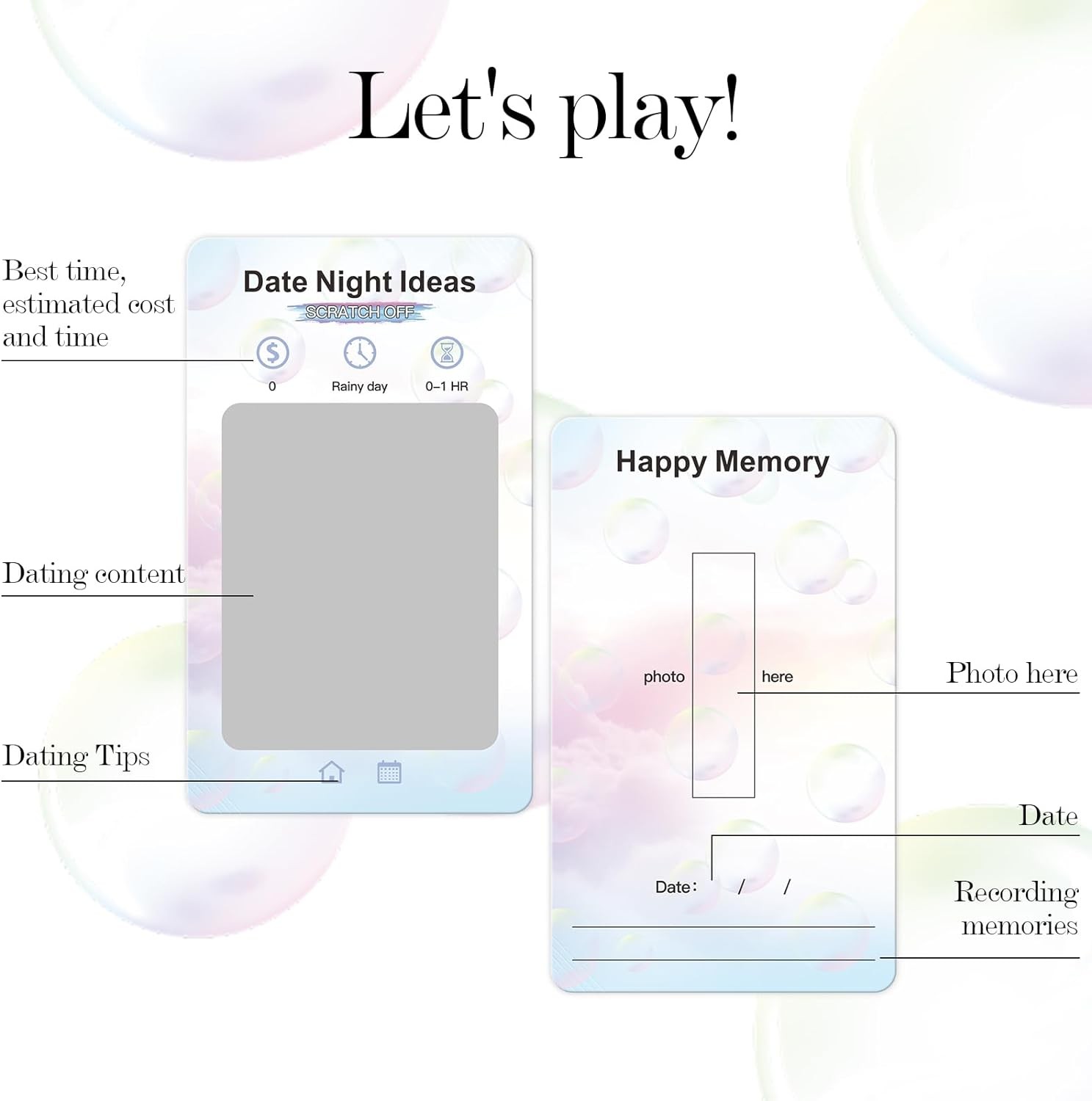 No Complicated Rules: No need to worry, all you need to do is choose a date night card that suits you and let the dating card make the dating decision for you based on the hidden information. Each date night card includes information about how long it will take and budget information, and you can't take it back once you've scratched it off, so prepare for this amazing date with an open mind!