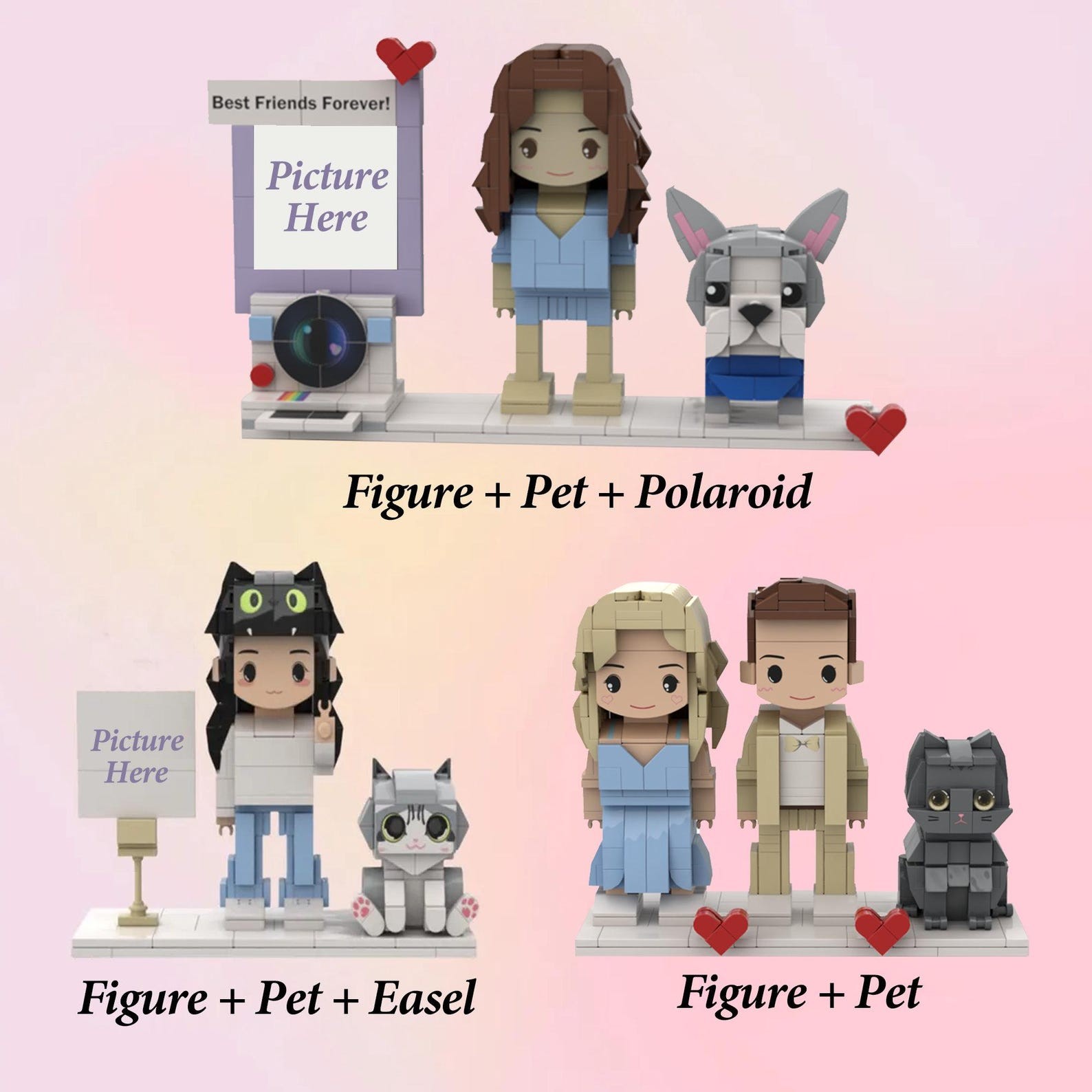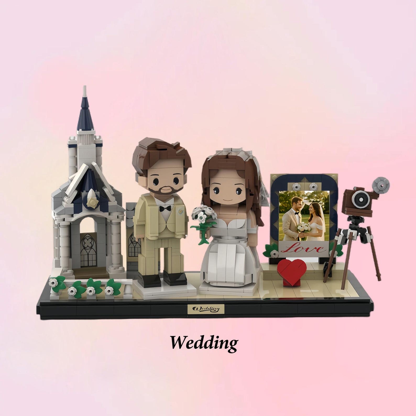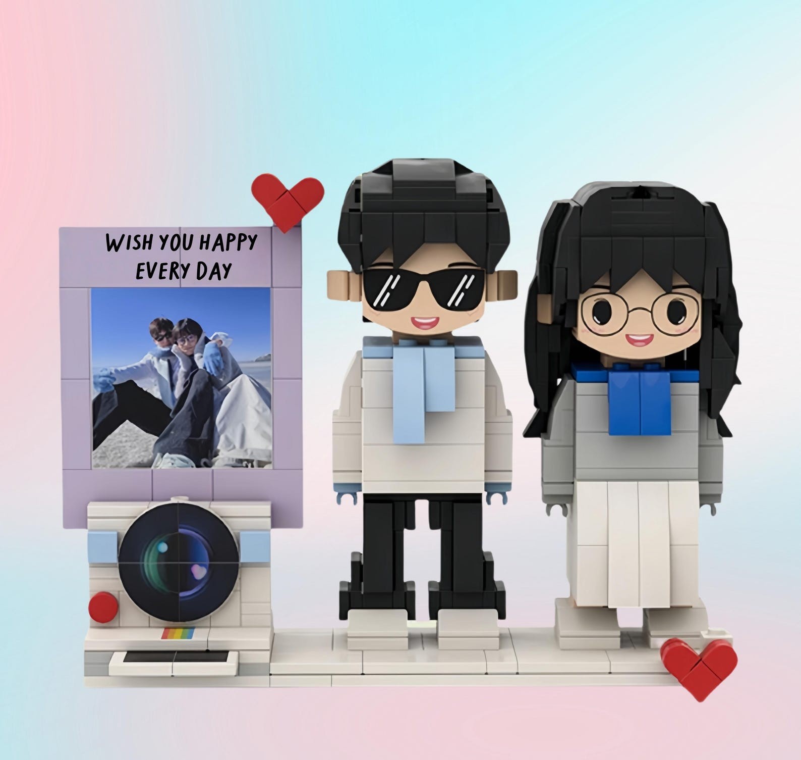 Custom 2 Person Brick Figures with Easel Frame, Personalized Building Block,Figure, Photo Puzzle Toy, Keepsake for Couples Friends