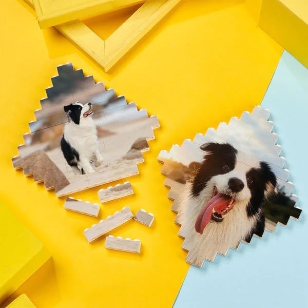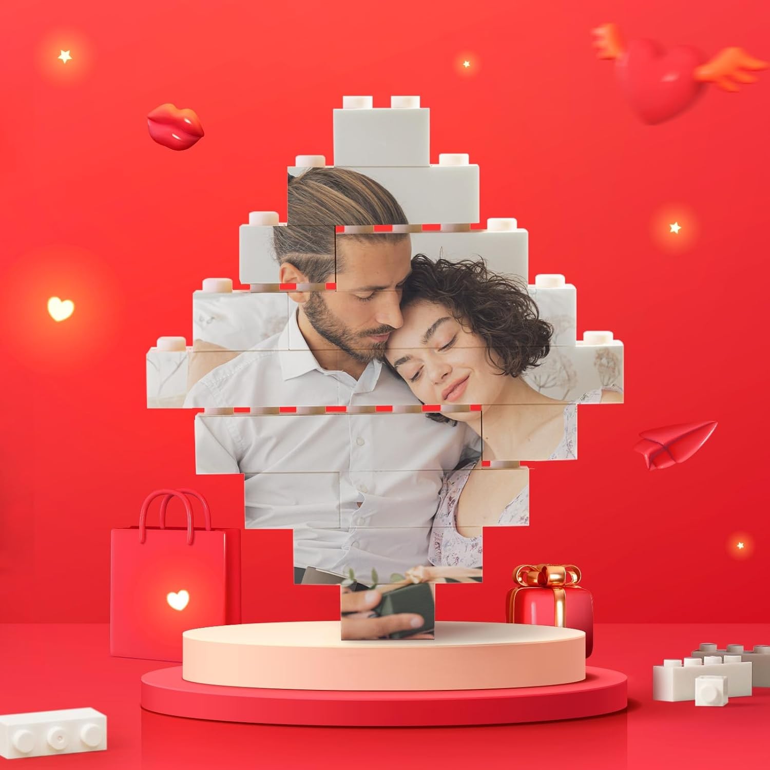 Custom Building Brick Personalized Photo Block Puzzle Diamond Shaped Picture Customized Valentines Day Gifts for Him, Her, Couples Lozenge