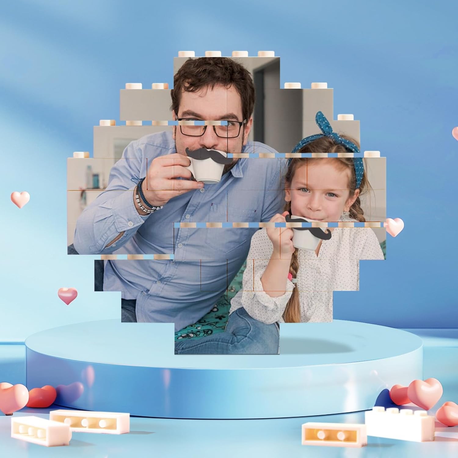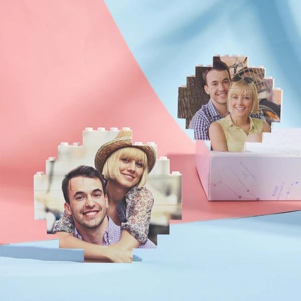 Custom Building Brick Personalized Photo Block Puzzle Diamond Shaped Picture Customized Valentines Day Gifts for Him, Her, Couples Rounded