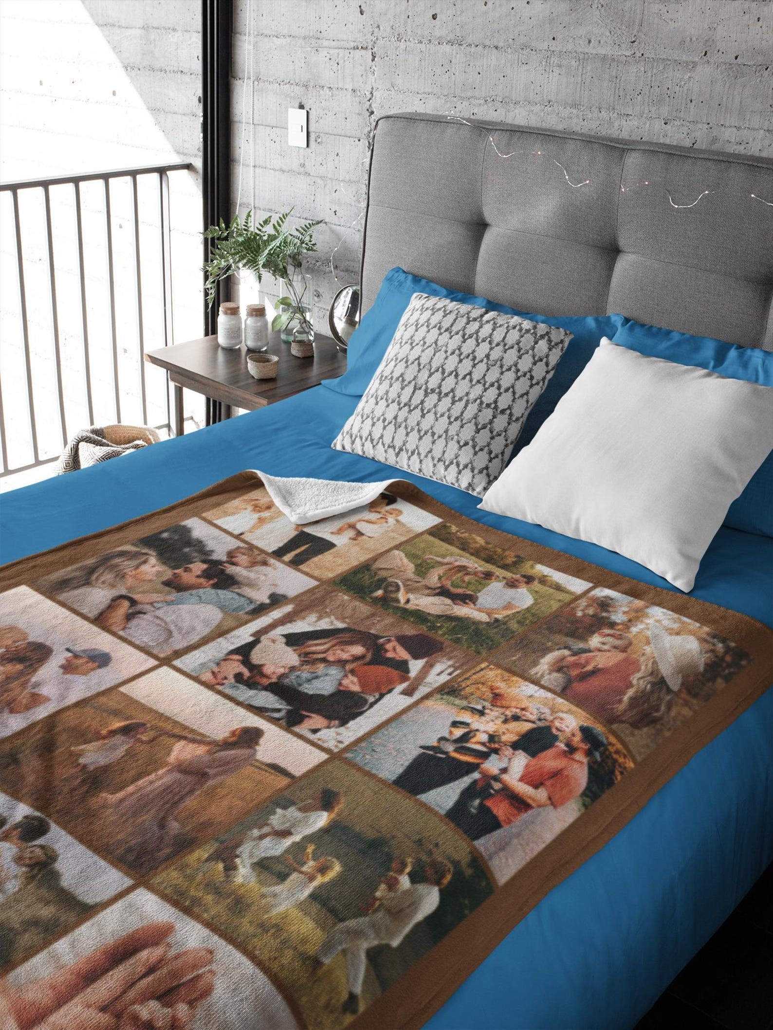Custom Photo Blanket Collage, Picture Blanket With Text, Memorial Blanket, Friend Couples Gift, Birthday Anniversary Gift, Family Blanket