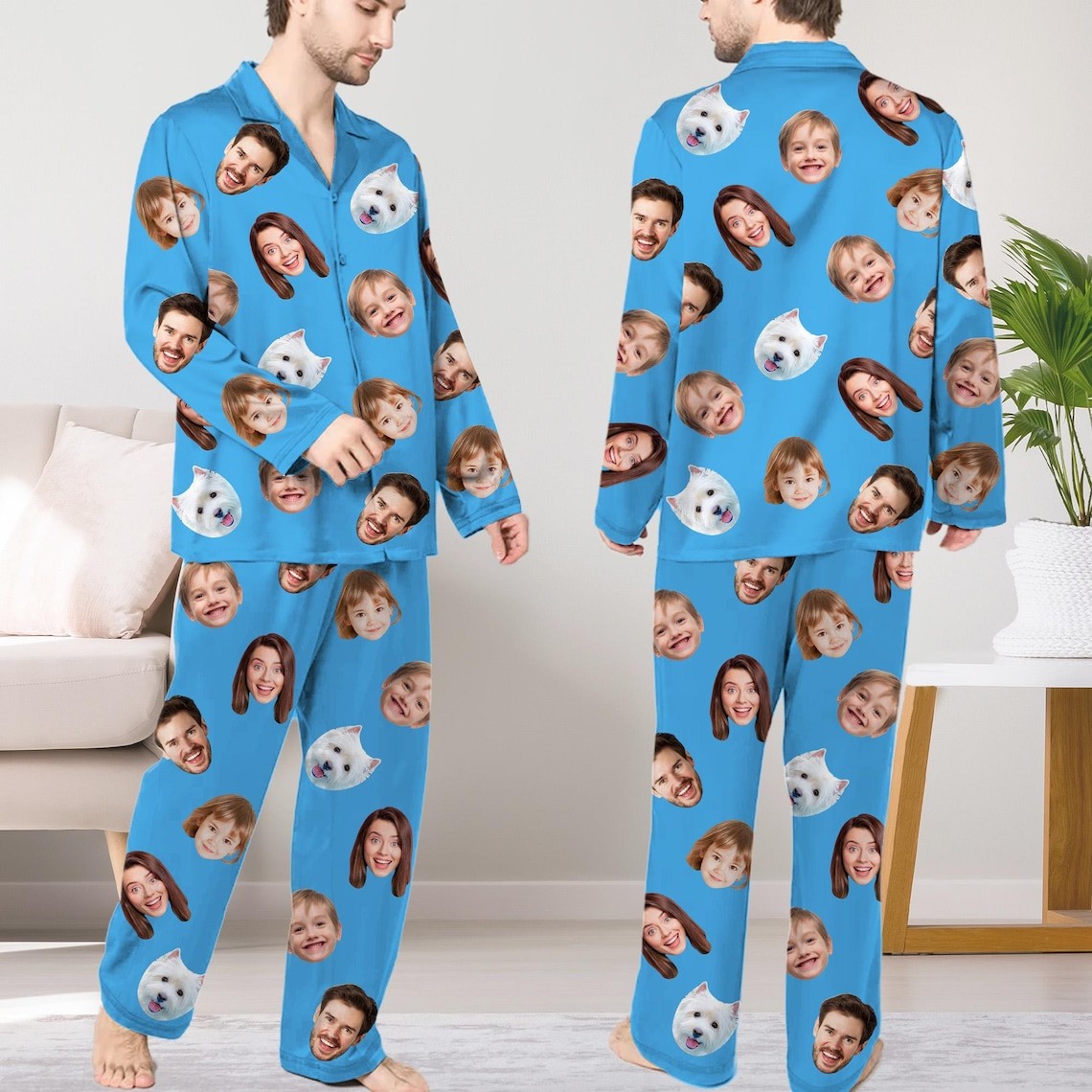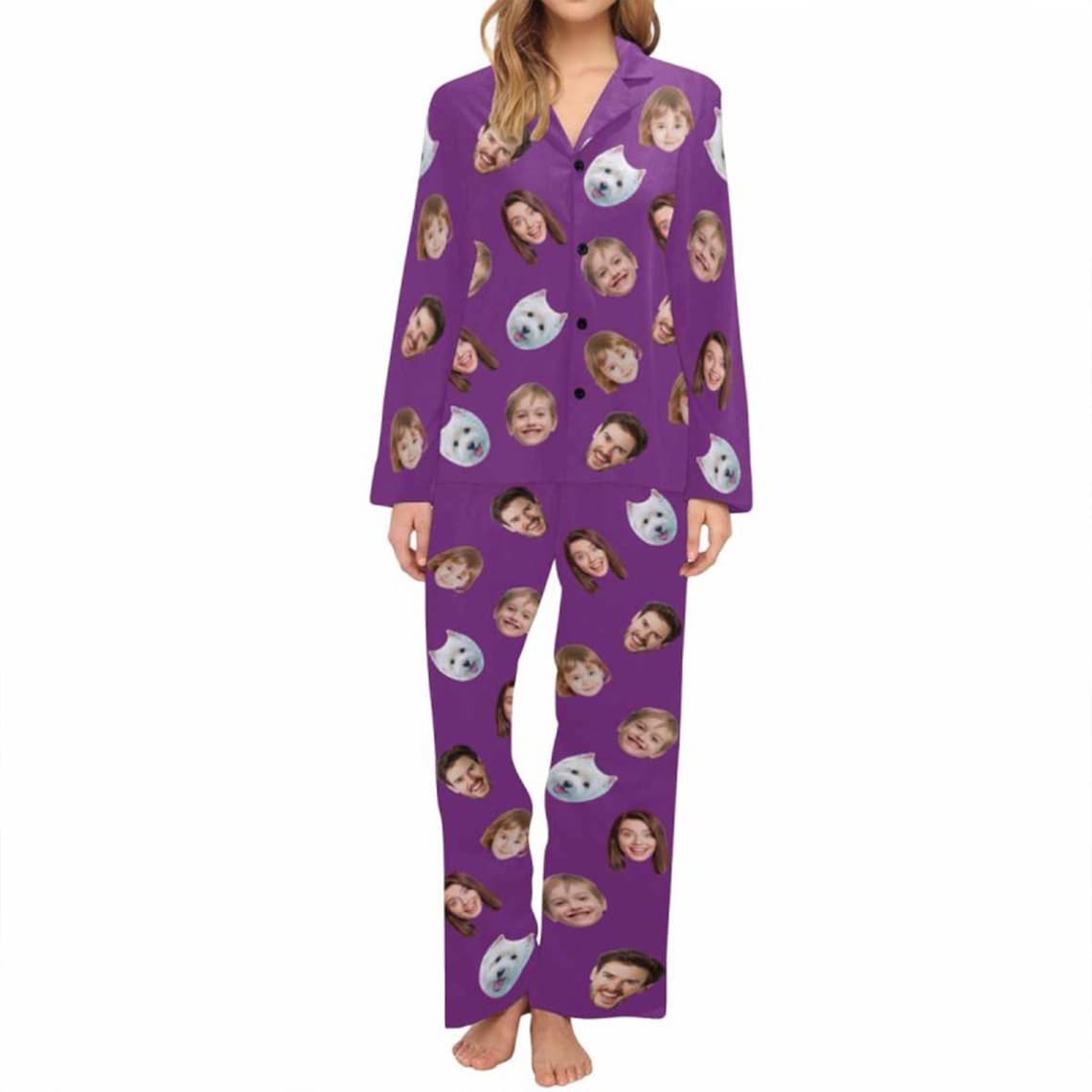 Custom Picture Face Pajama Set: Personalized Photo Pajamas, Pet Faces On Sleepwear, Pictures Nightwear