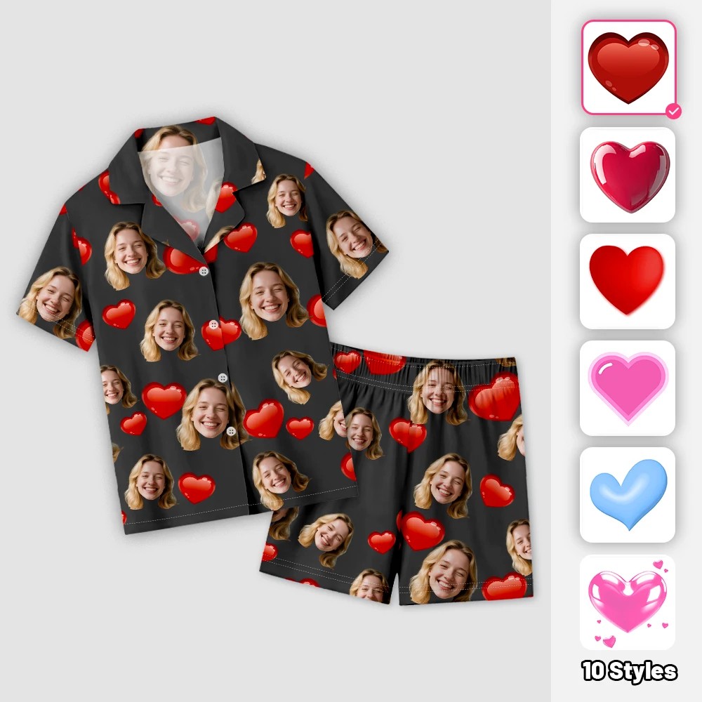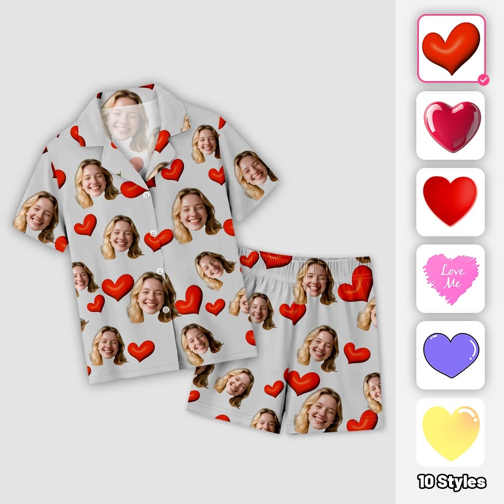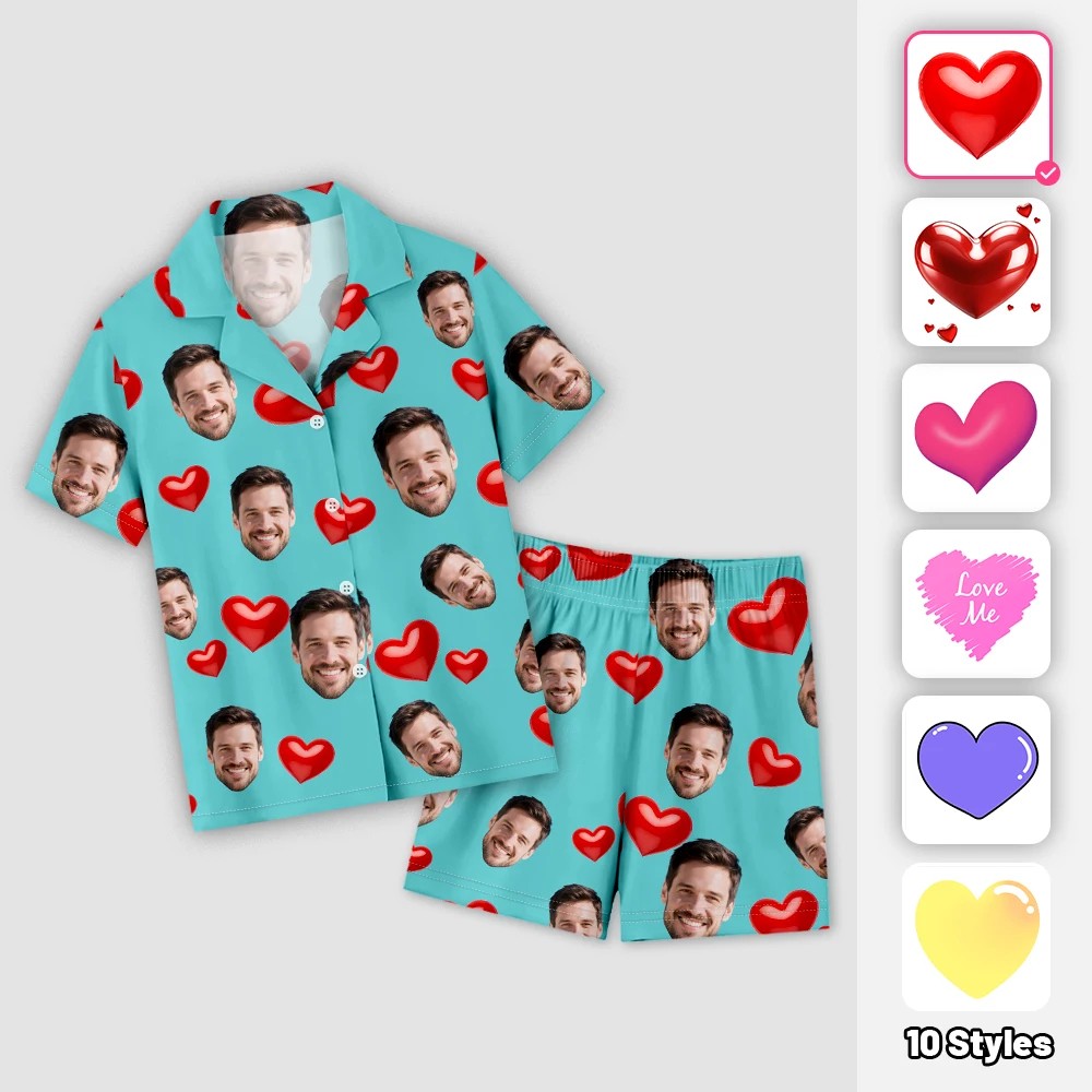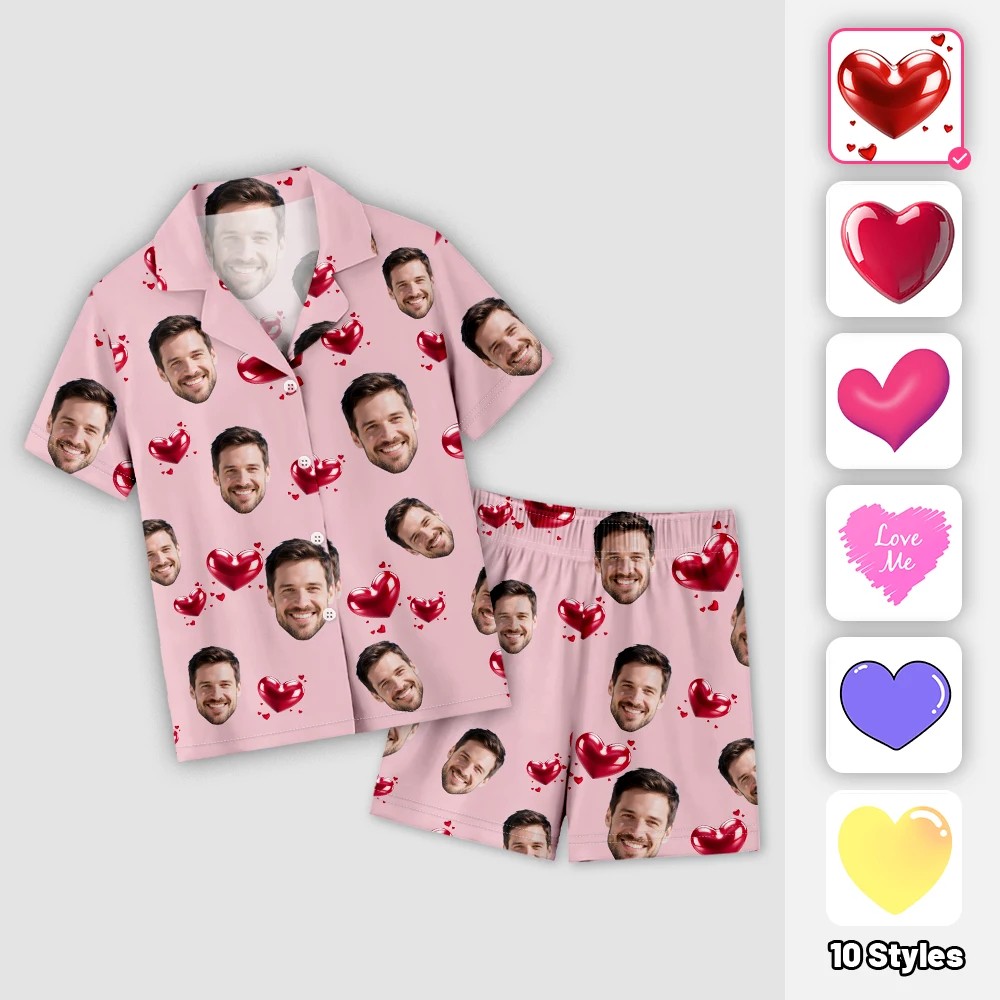 Custom Short Sleeve Pajamas Heart Print Cotton Set Face Printed Creative Couple Memory Valentine's Gift Idea