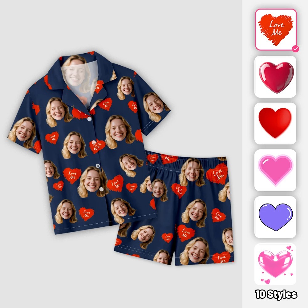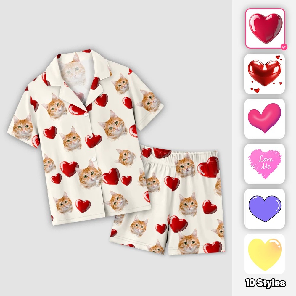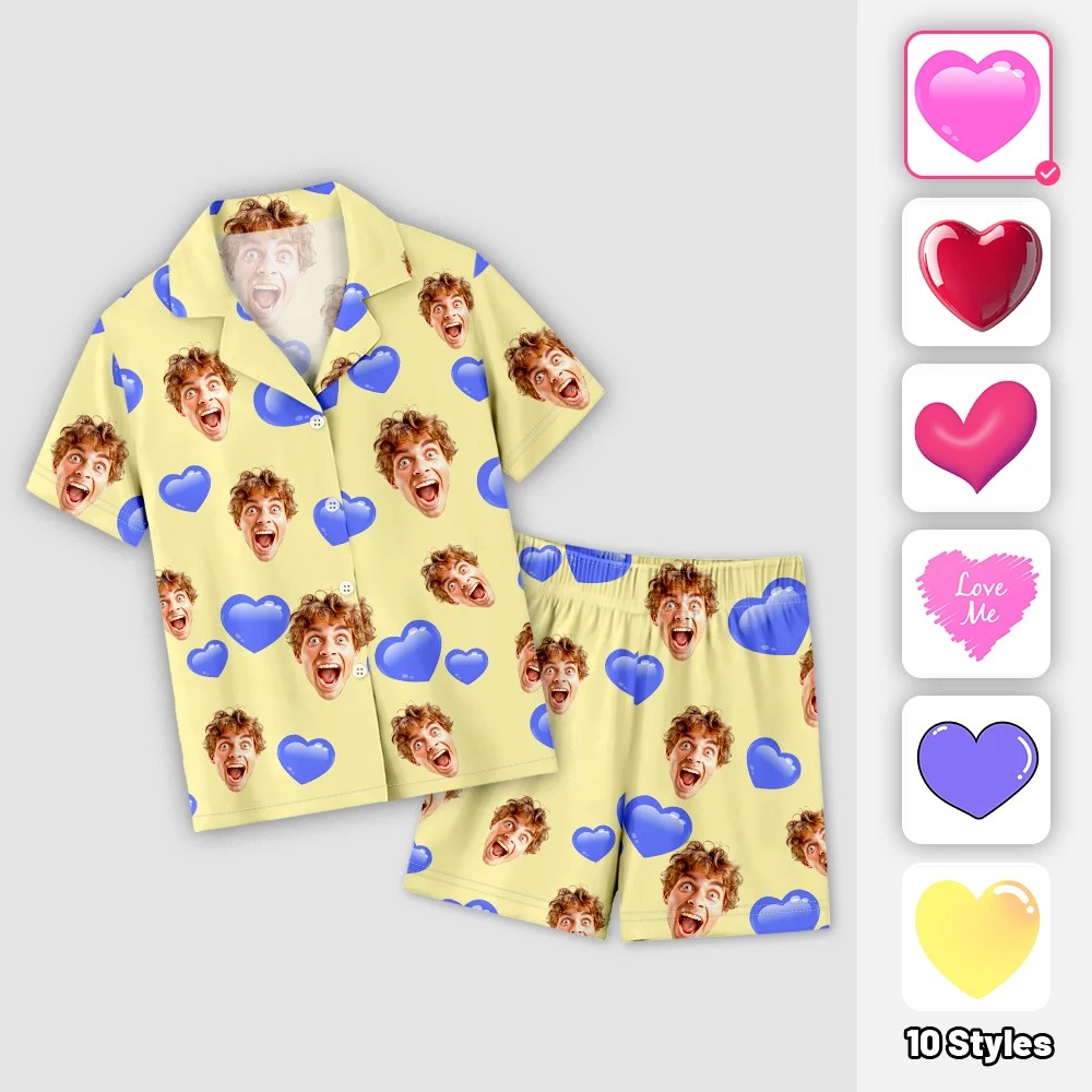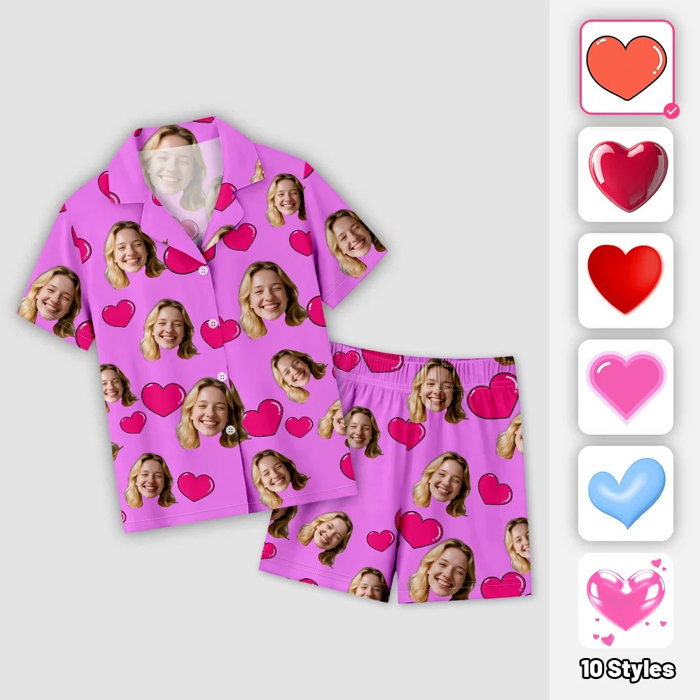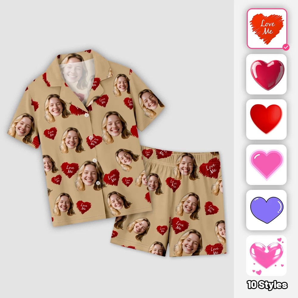 Custom Short Sleeve Pajamas Heart Print Cotton Set Face Printed Creative Couple Memory Valentine's Gift Idea