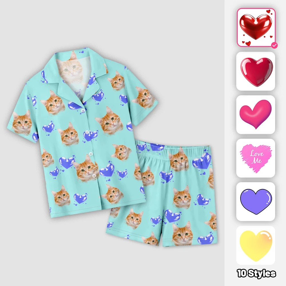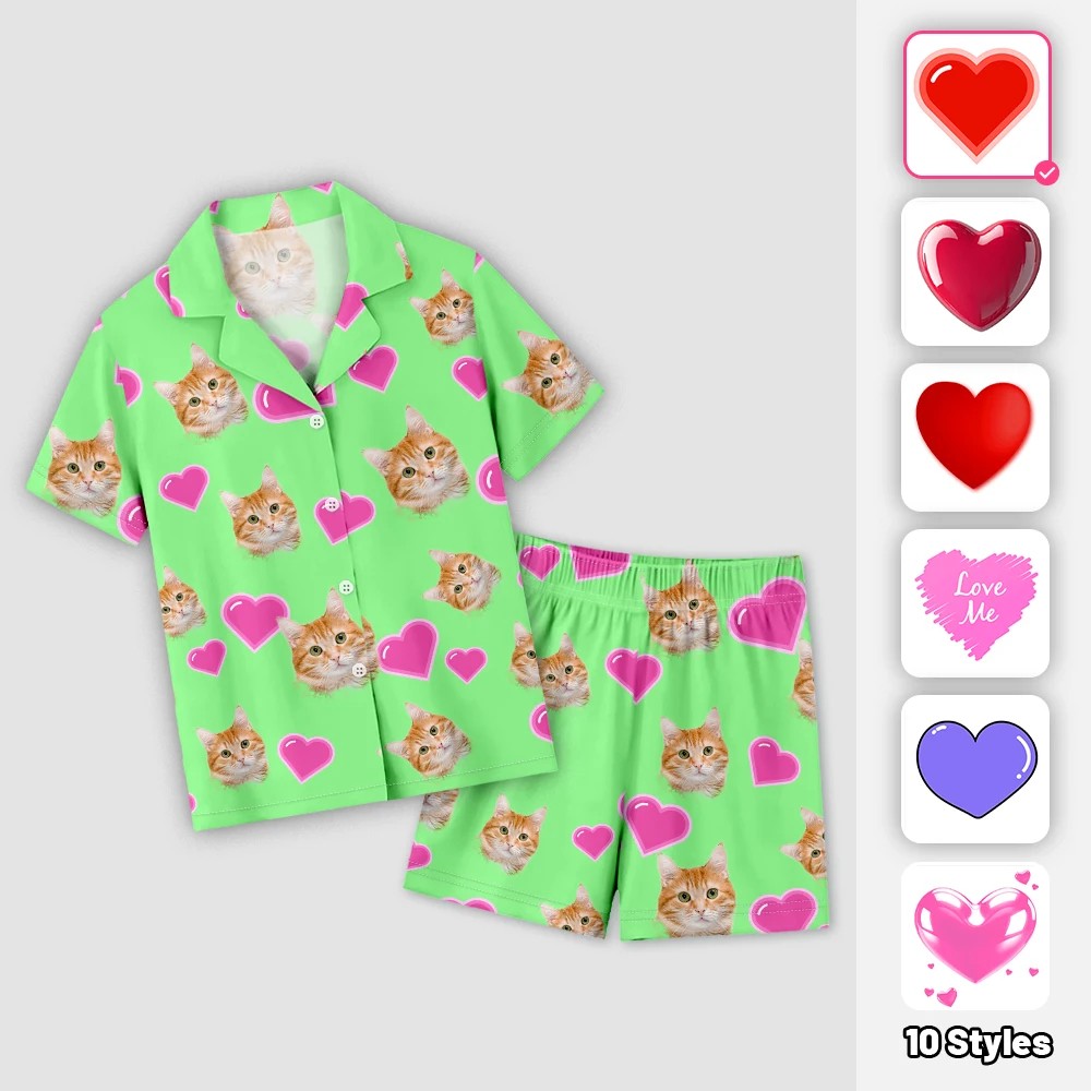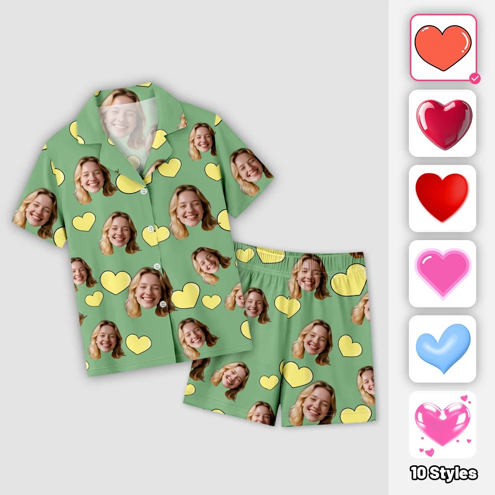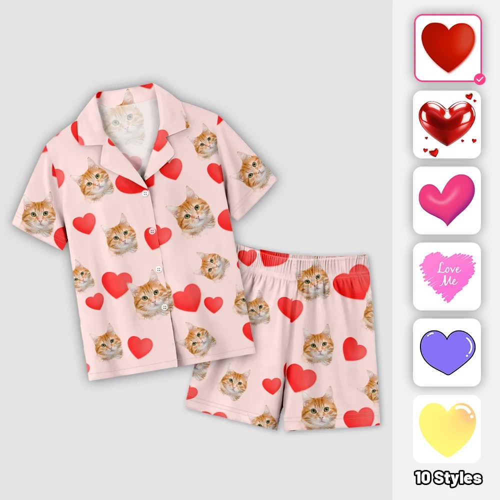 Custom Short Sleeve Pajamas Heart Print Cotton Set Face Printed Creative Couple Memory Valentine's Gift Idea