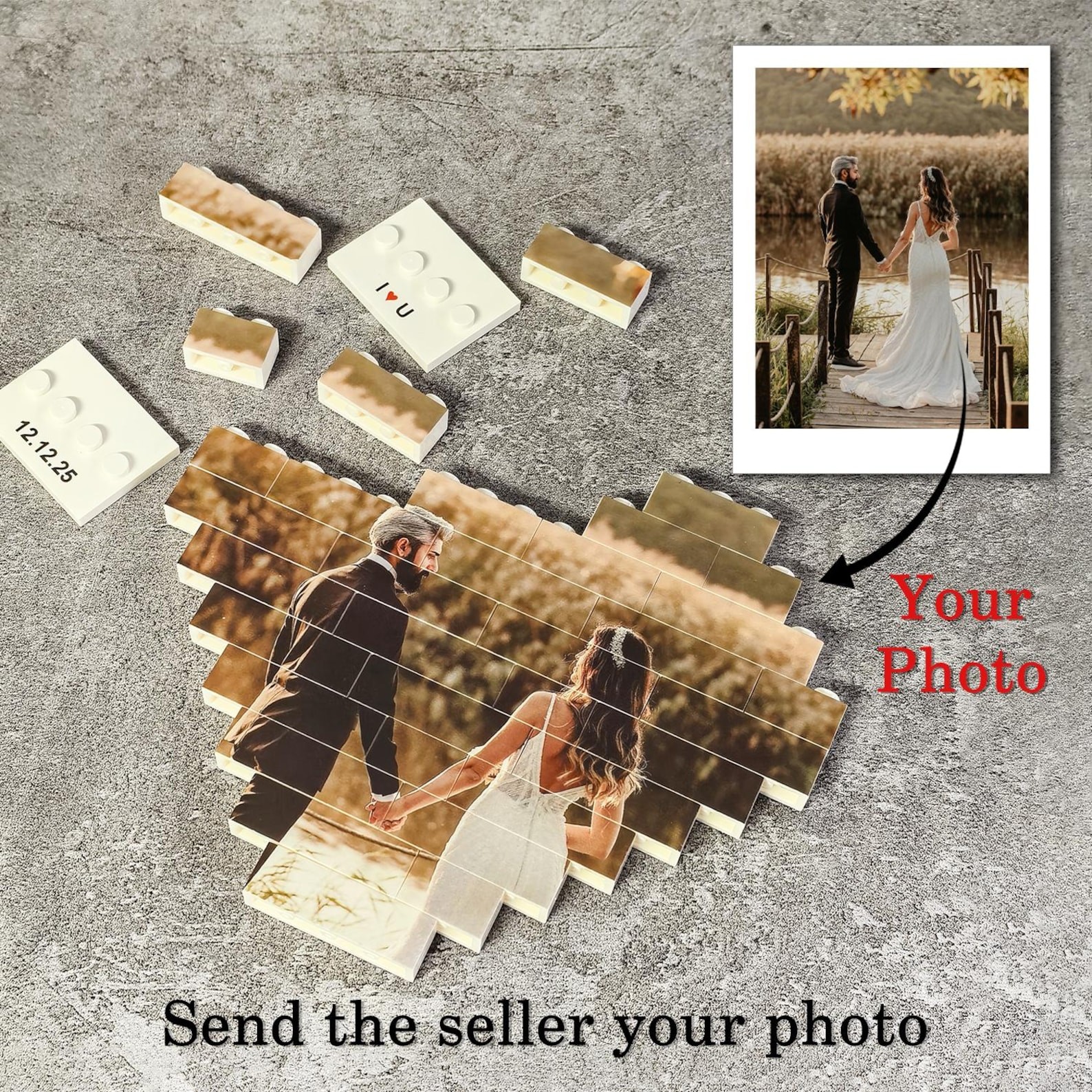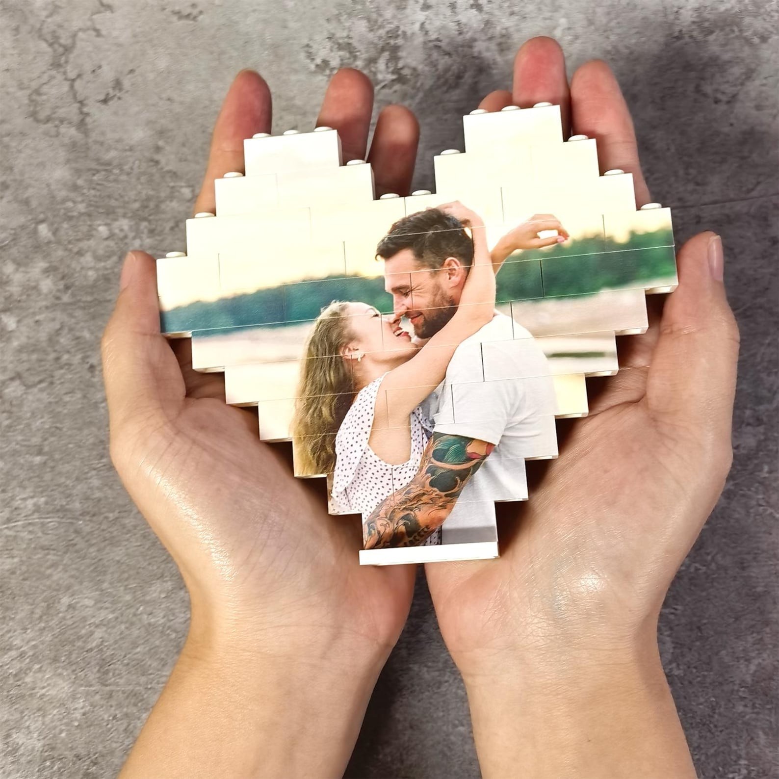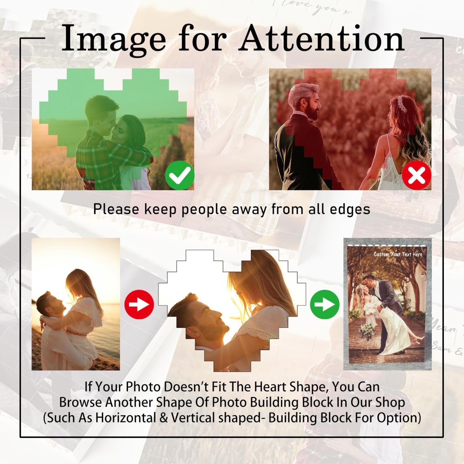 Heart Shaped Photo Blocks, Love you, Custom Initials or Date, Personalized Picture Building Block with Stand, Cute Gift Ideas for Boyfriends