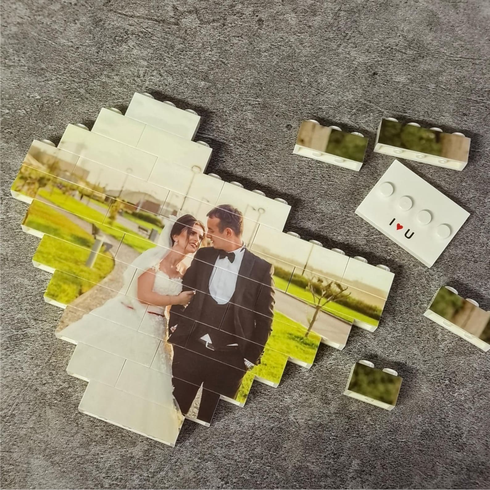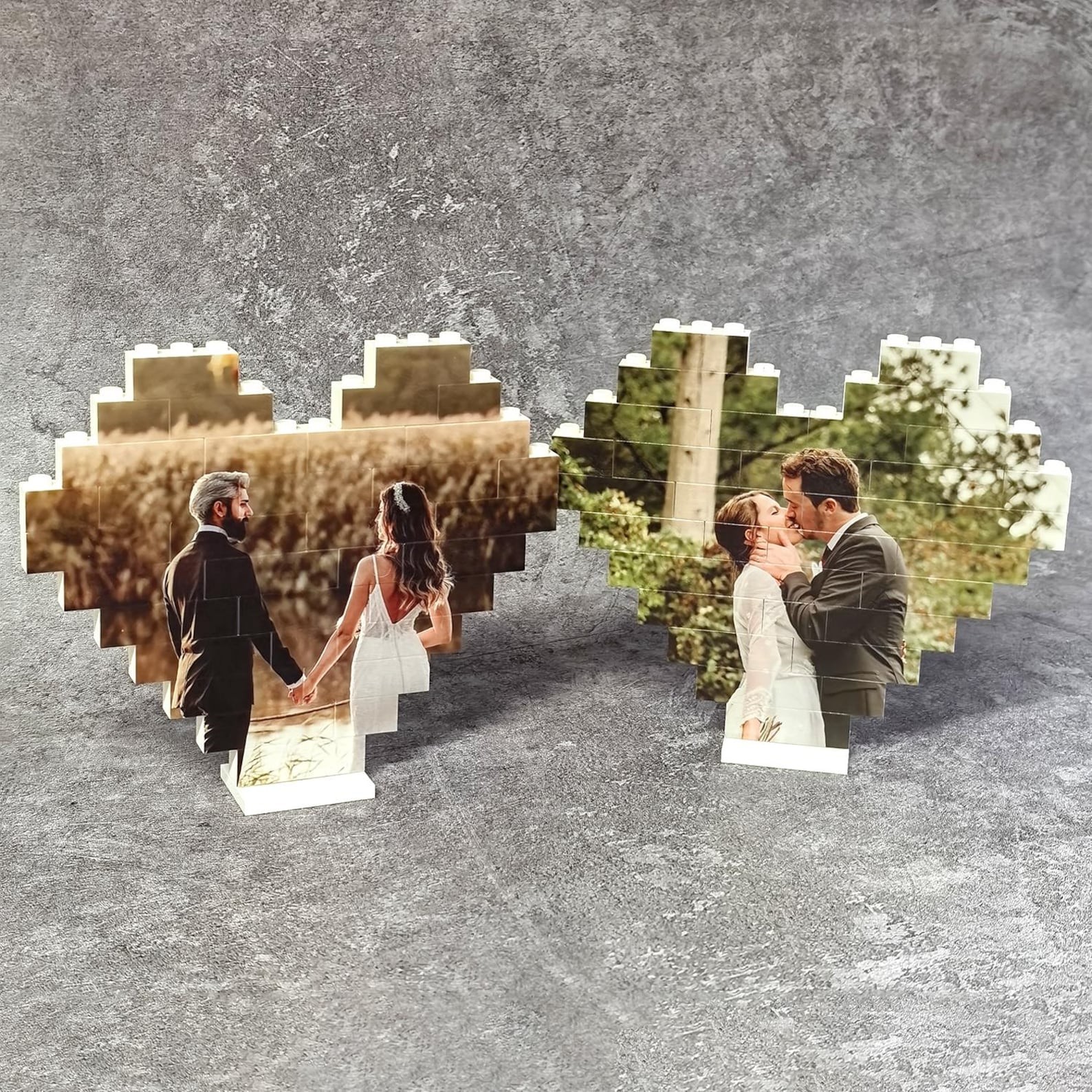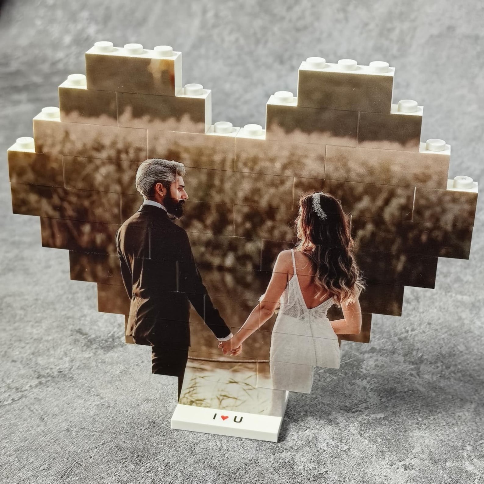 Heart Shaped Photo Blocks, Love you, Custom Initials or Date, Personalized Picture Building Block with Stand, Cute Gift Ideas for Boyfriends