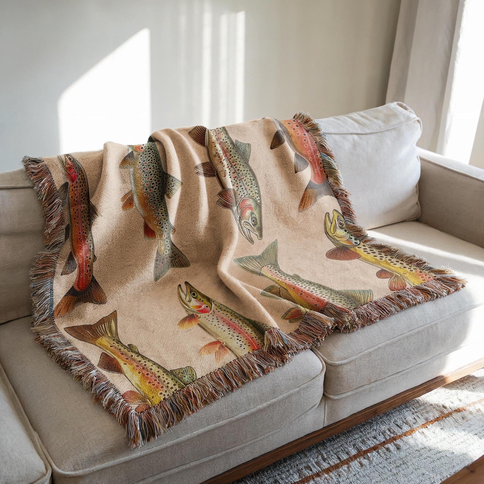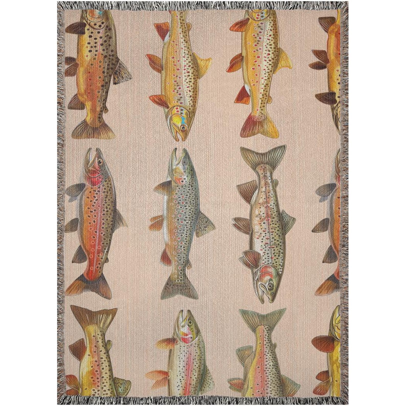 Lake House Woven Blanket, Rainbow Trout, Great Lakes Trout Fishing Gift, Fly Fishing Gift For Fishermen, Cabin Gift, Gift for Dad or Husband