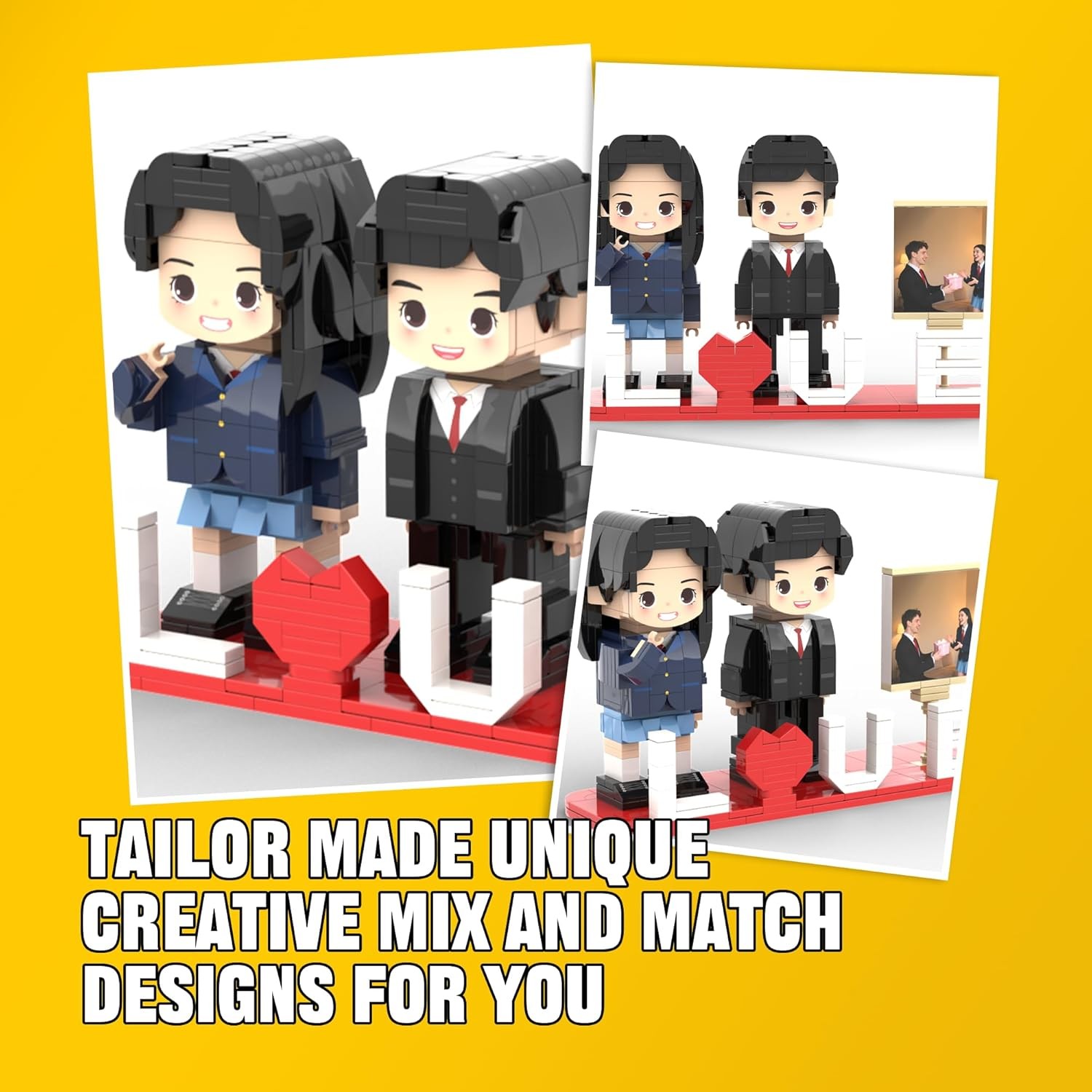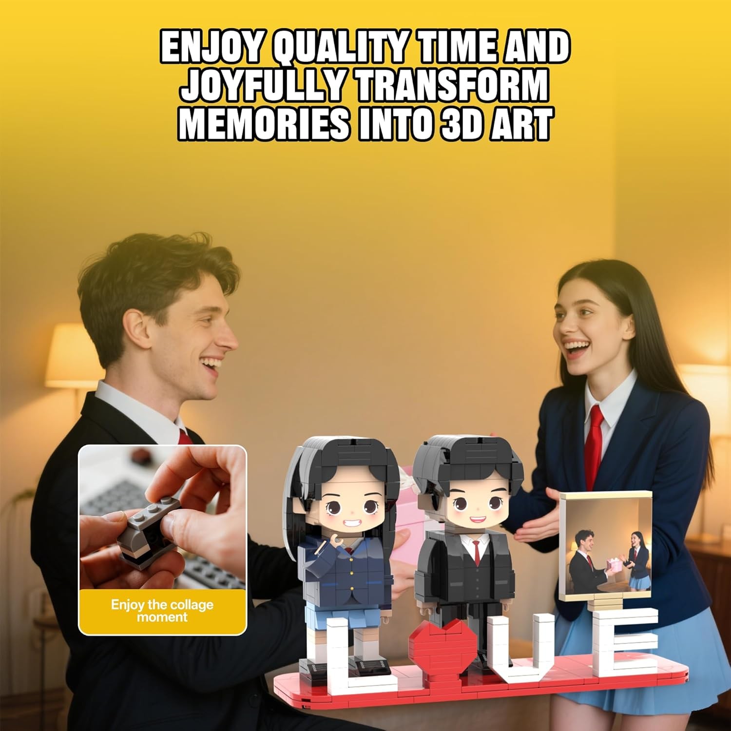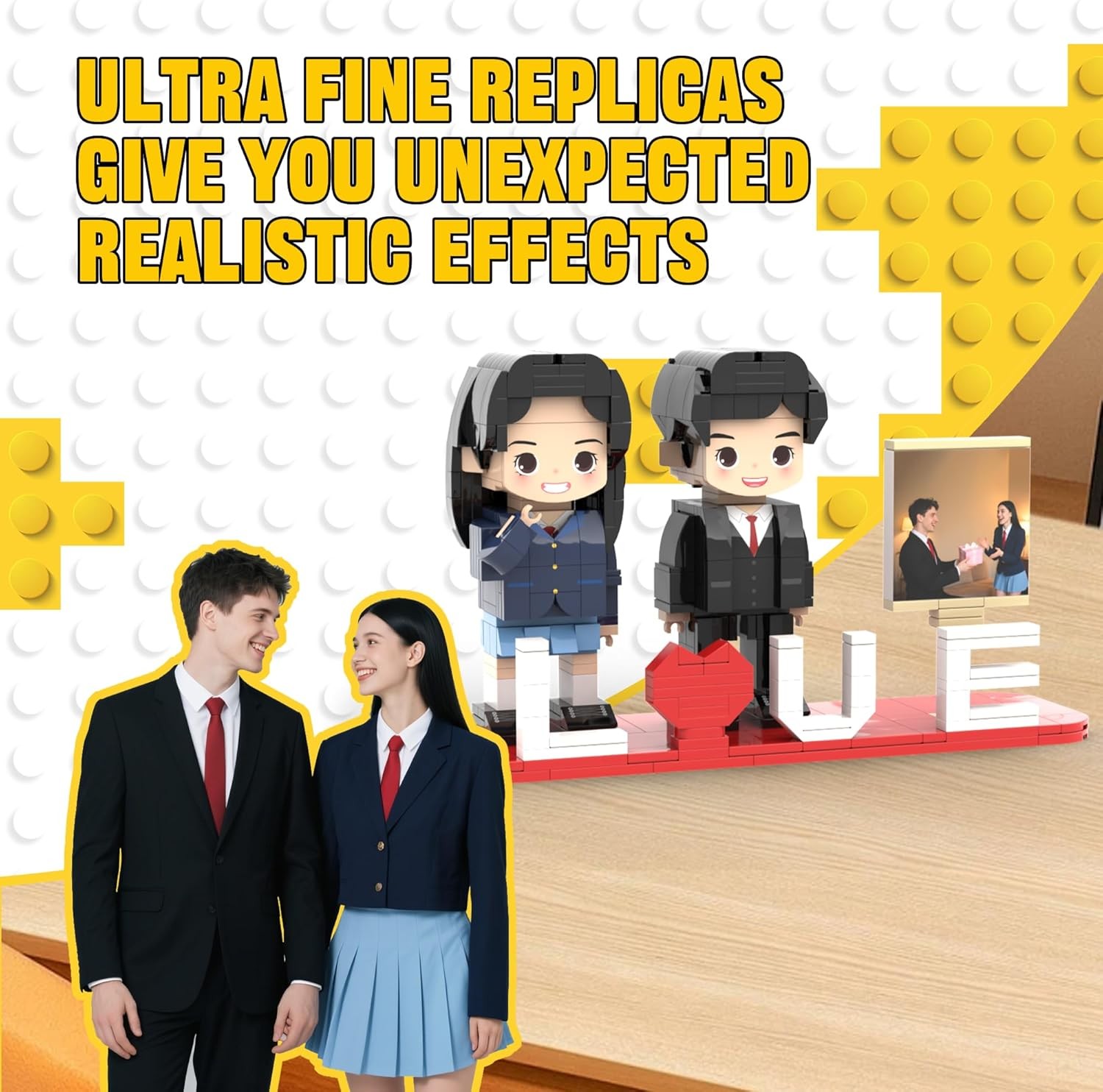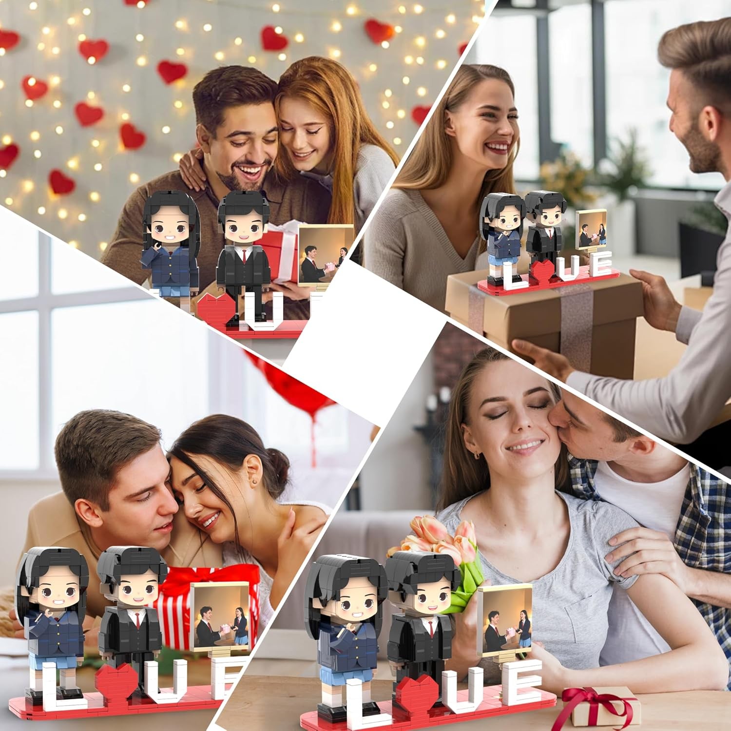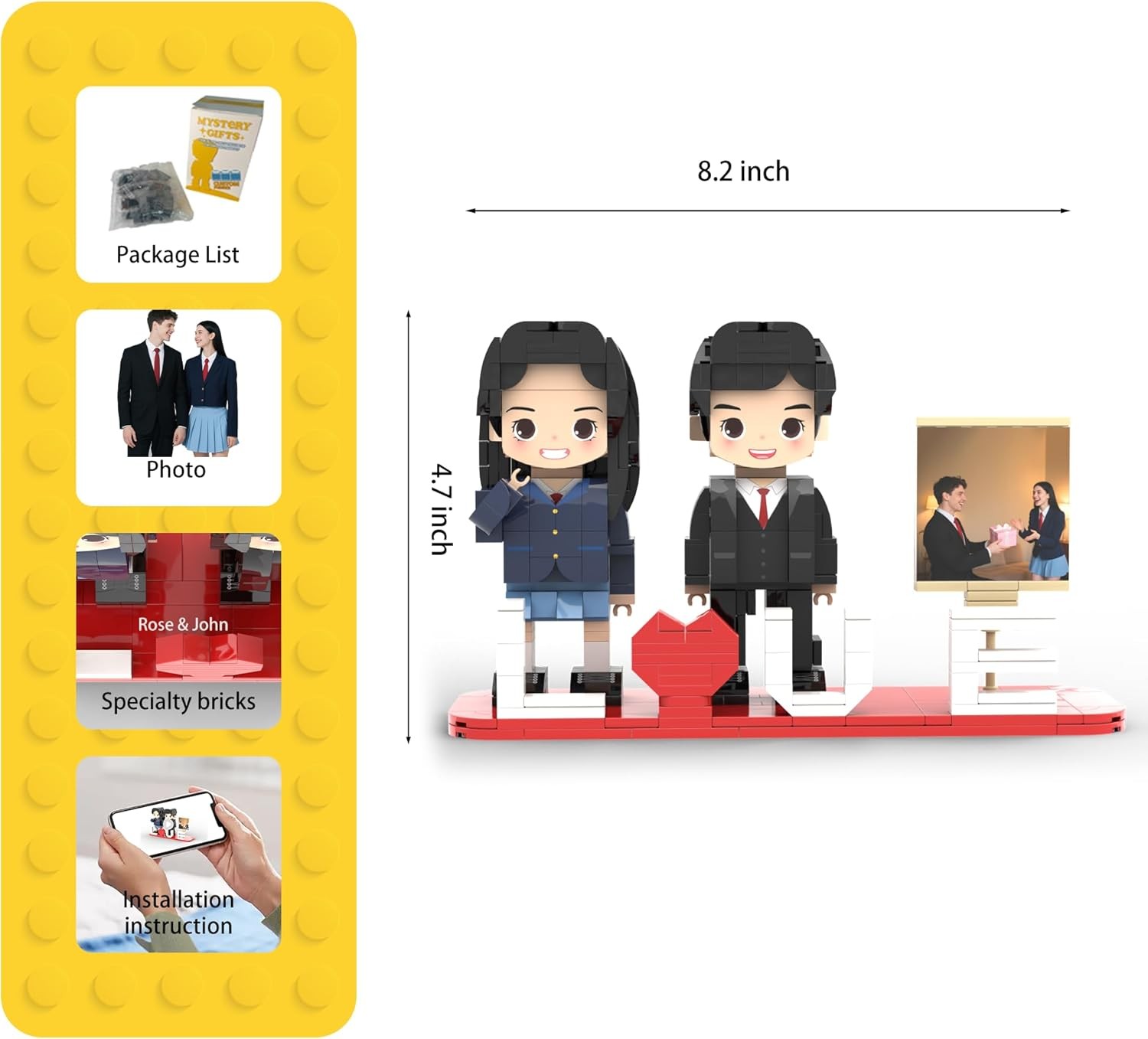Personalized Block Puzzle,Custom Puzzles from Photos,Custom Photo Mini Building Block Sets Gift with White Base for Lovers, Friends,Romantic Home Decor