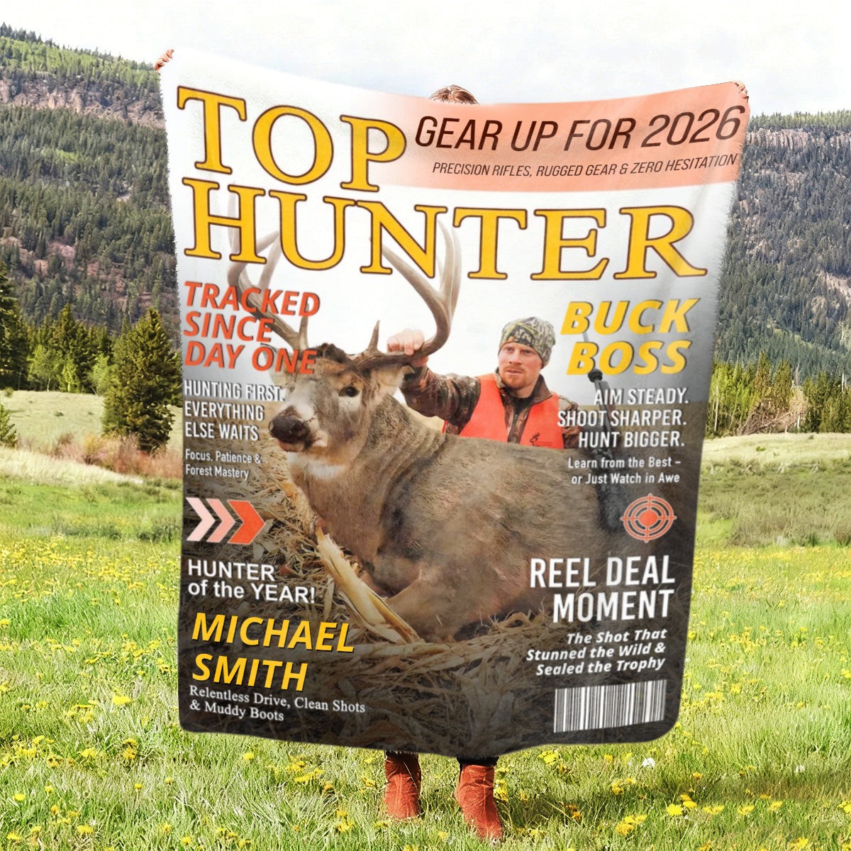 Personalized Hunting Magazine Cover Blanket Gifts for Men, Deer Hunting, Hunting Men Gift