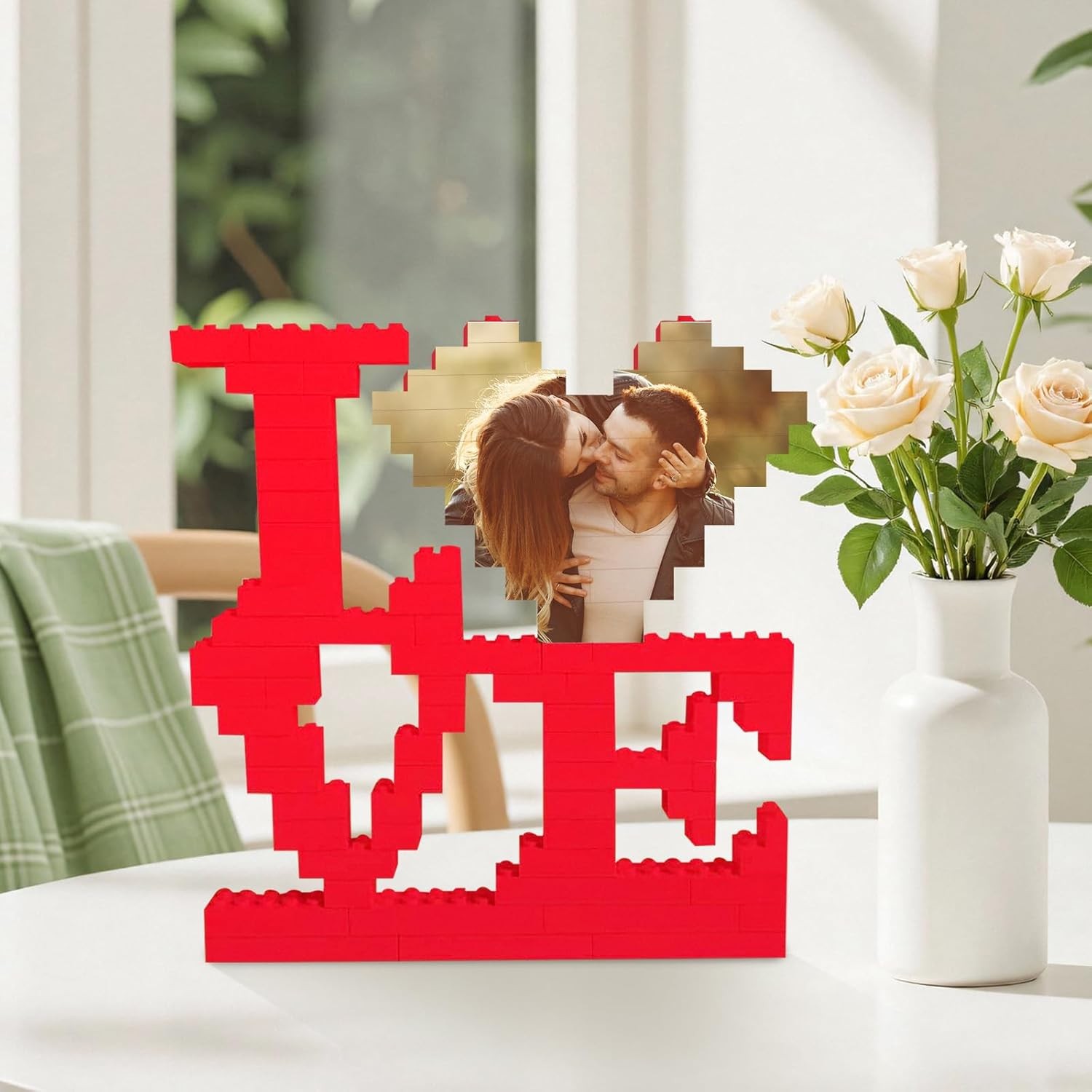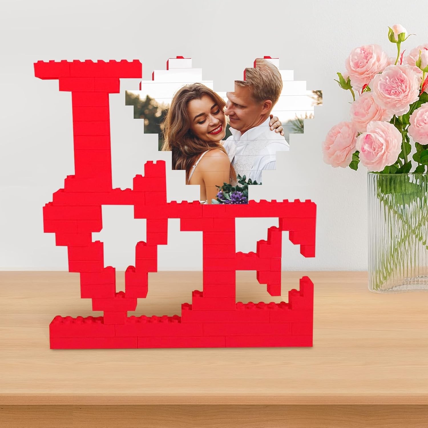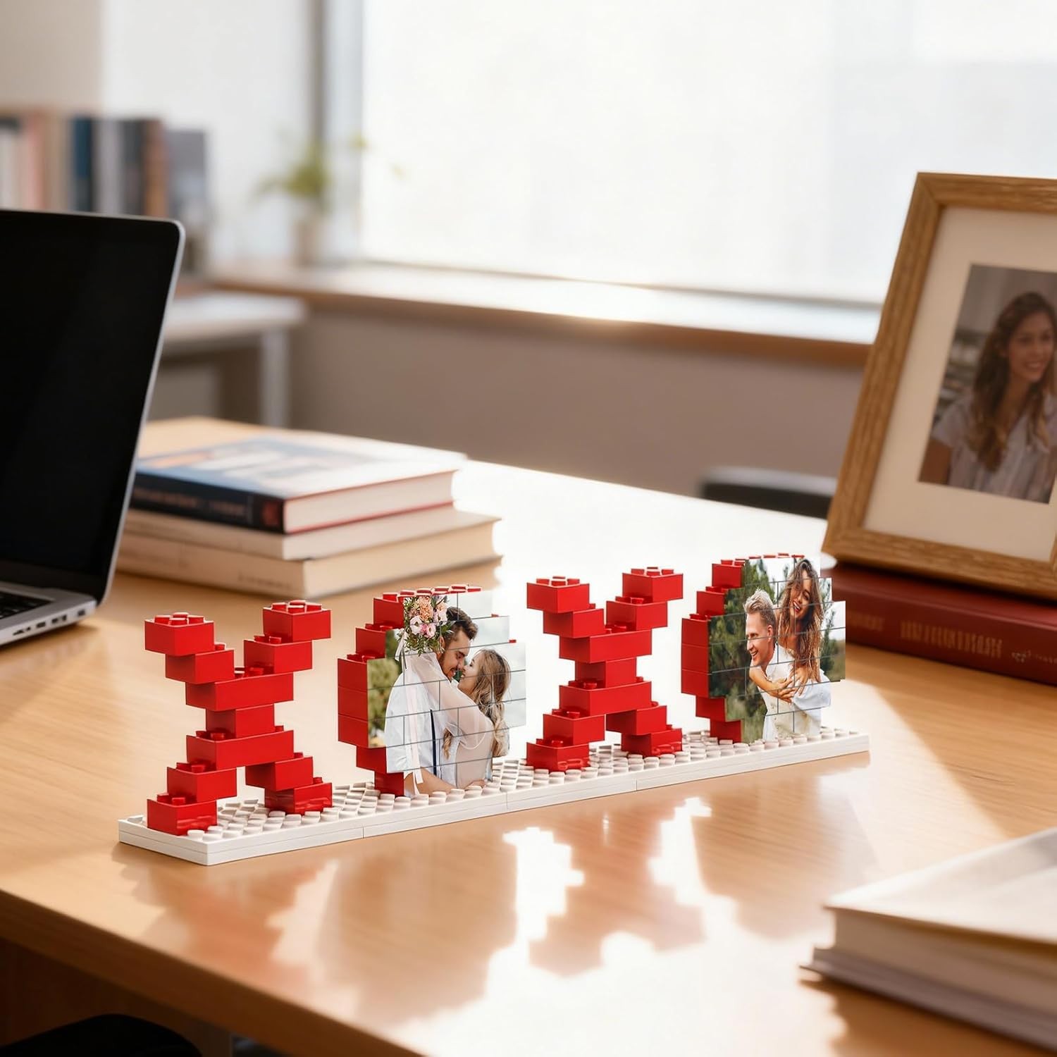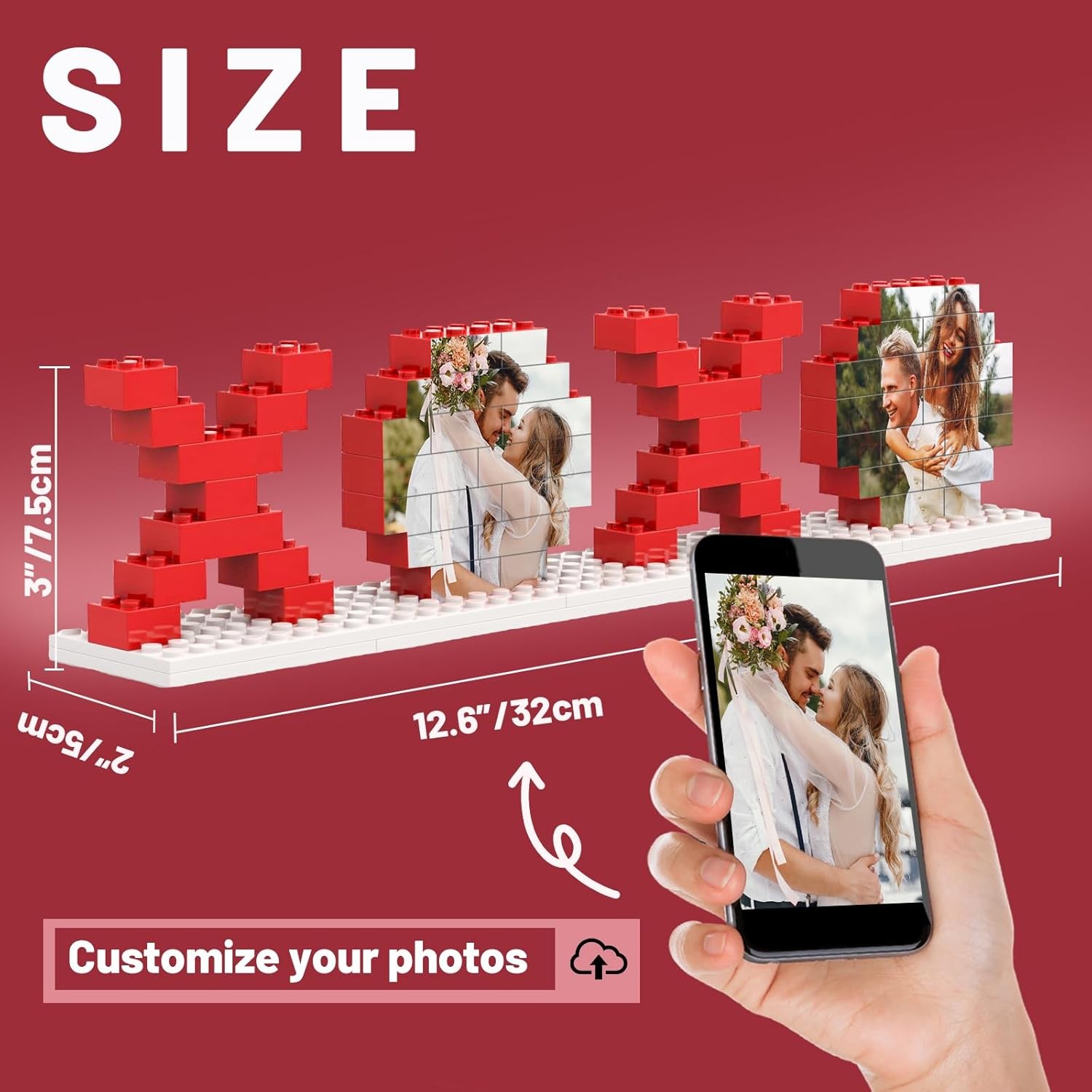 Personalized Photo Puzzle Initial Letters Bricks, Custom Heart Shape Picture Building Blocks Puzzles with Names, Romantic DIY Valentines Anniversary Birthday Gifts for Lovers, Couples Love