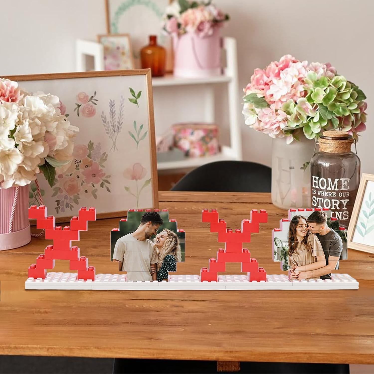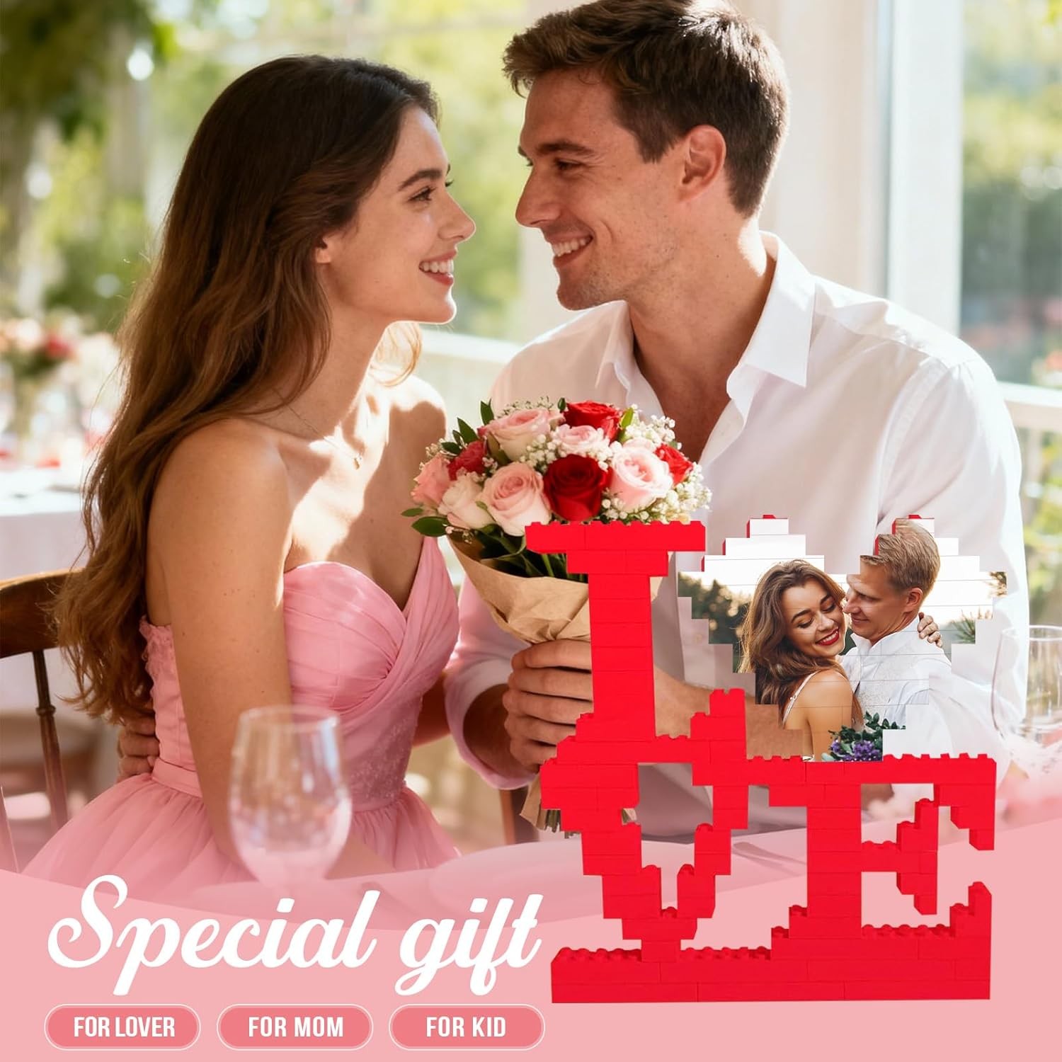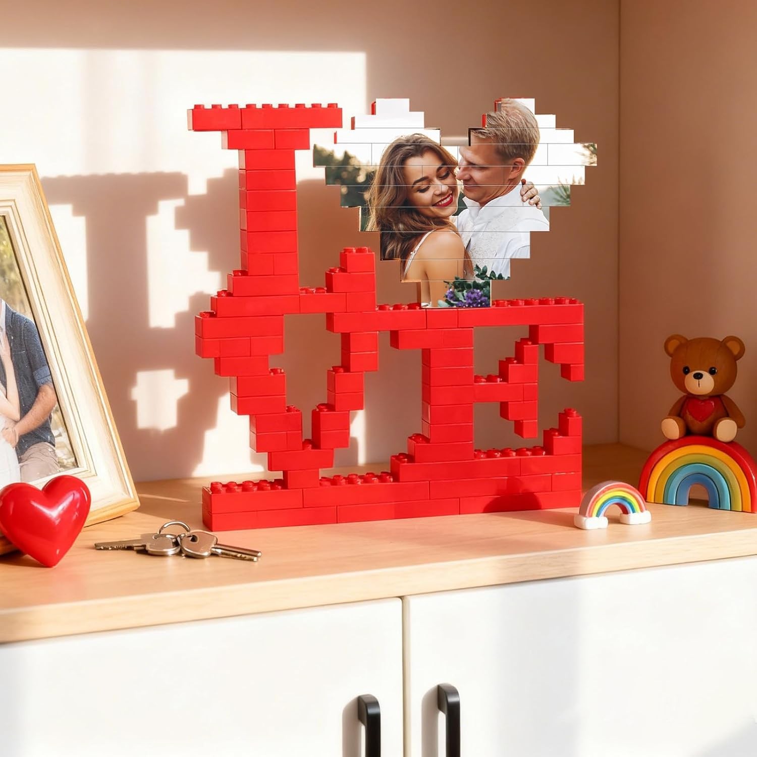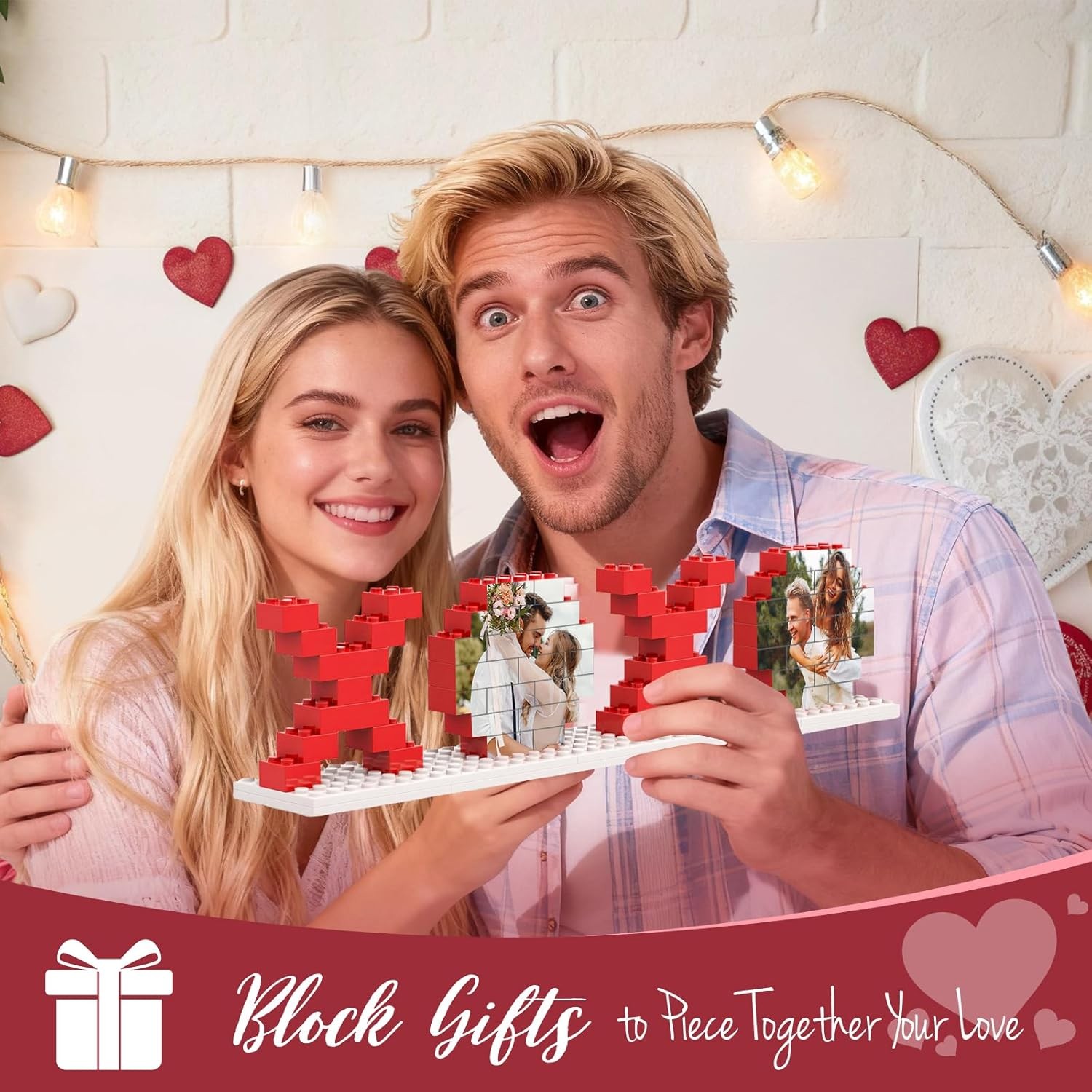 Personalized Photo Puzzle Initial Letters Bricks, Custom Heart Shape Picture Building Blocks Puzzles with Names, Romantic DIY Valentines Anniversary Birthday Gifts for Lovers, Couples Love