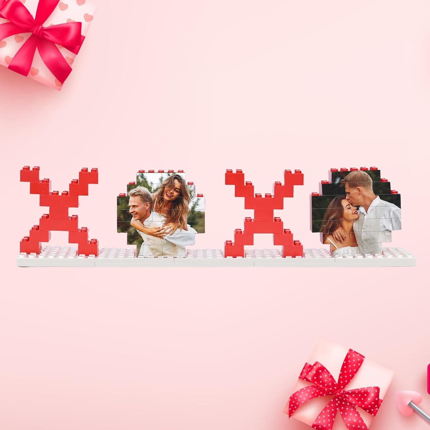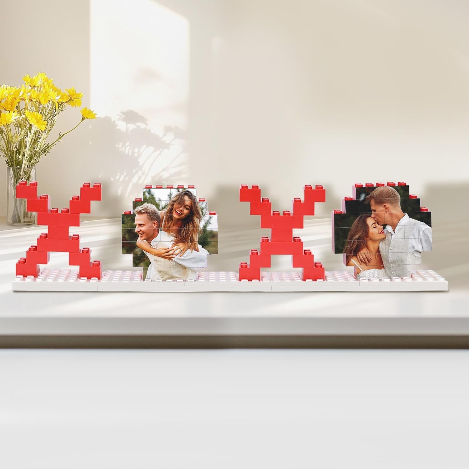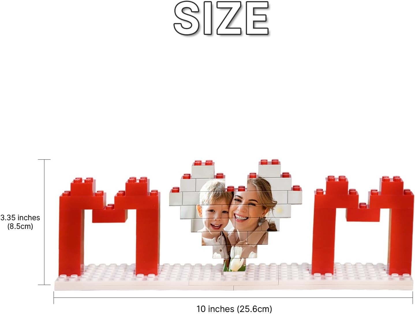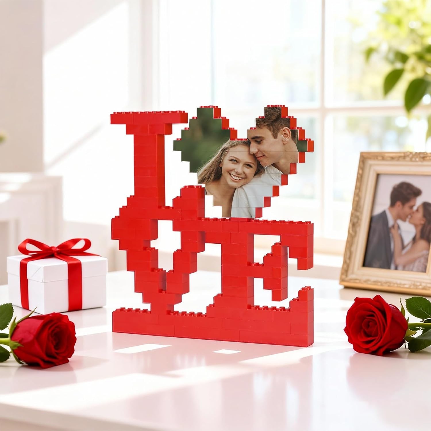 Personalized Photo Puzzle Initial Letters Bricks, Custom Heart Shape Picture Building Blocks Puzzles with Names, Romantic DIY Valentines Anniversary Birthday Gifts for Lovers, Couples Love