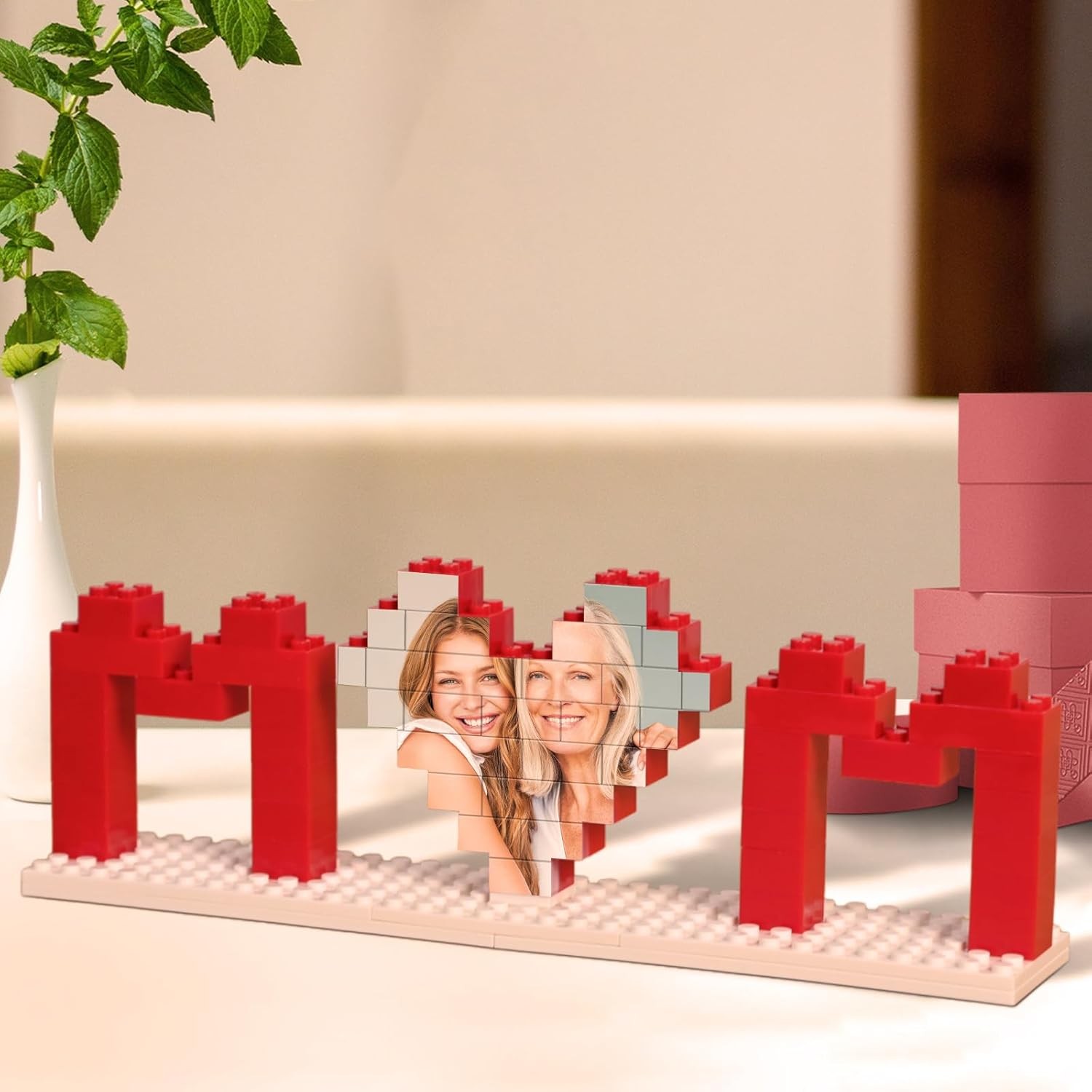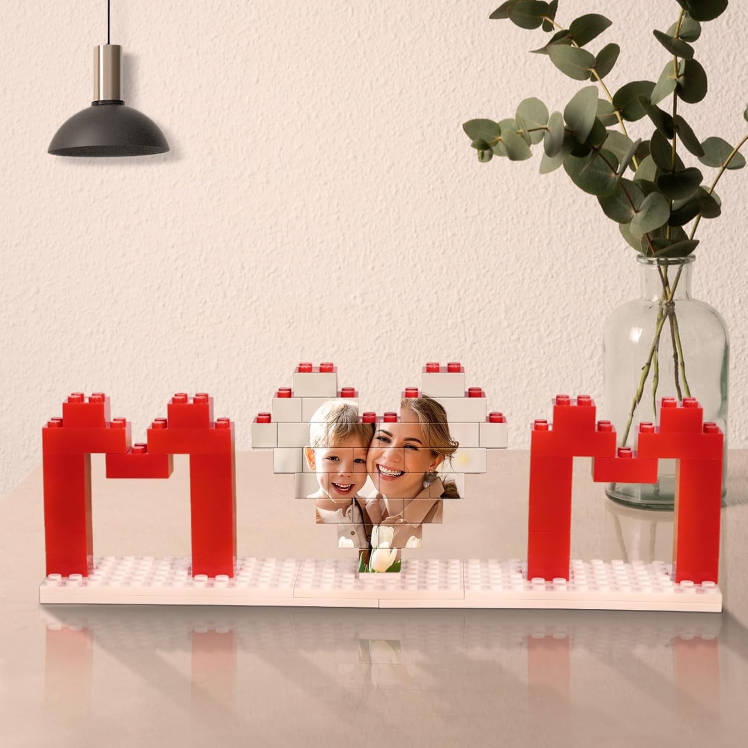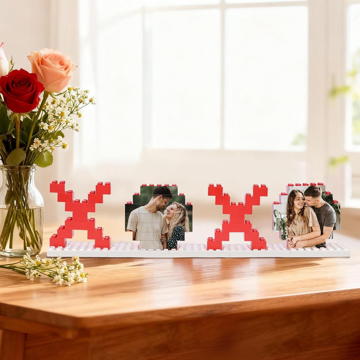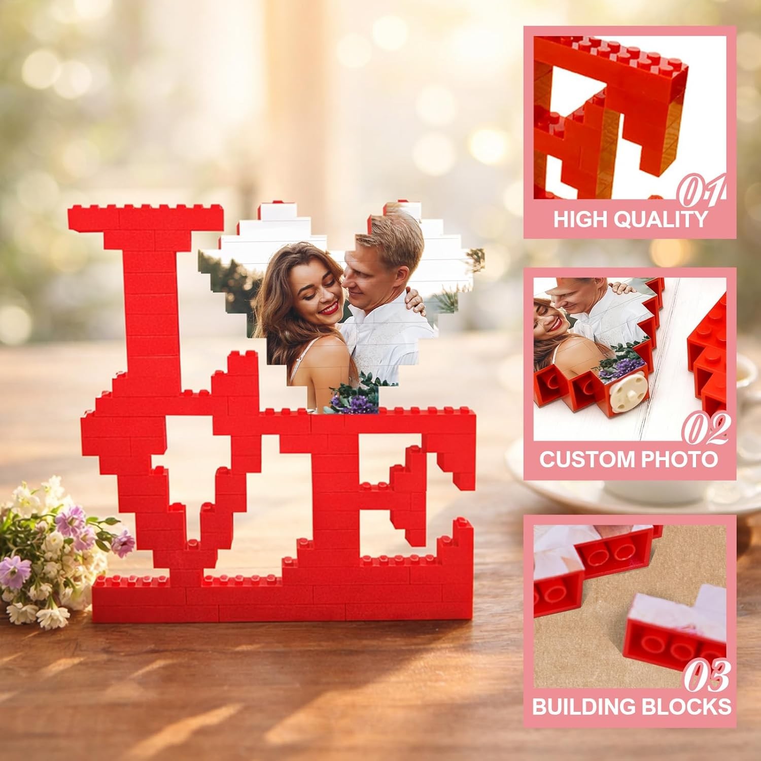 Personalized Photo Puzzle Initial Letters Bricks, Custom Heart Shape Picture Building Blocks Puzzles with Names, Romantic DIY Valentines Anniversary Birthday Gifts for Lovers, Couples Love