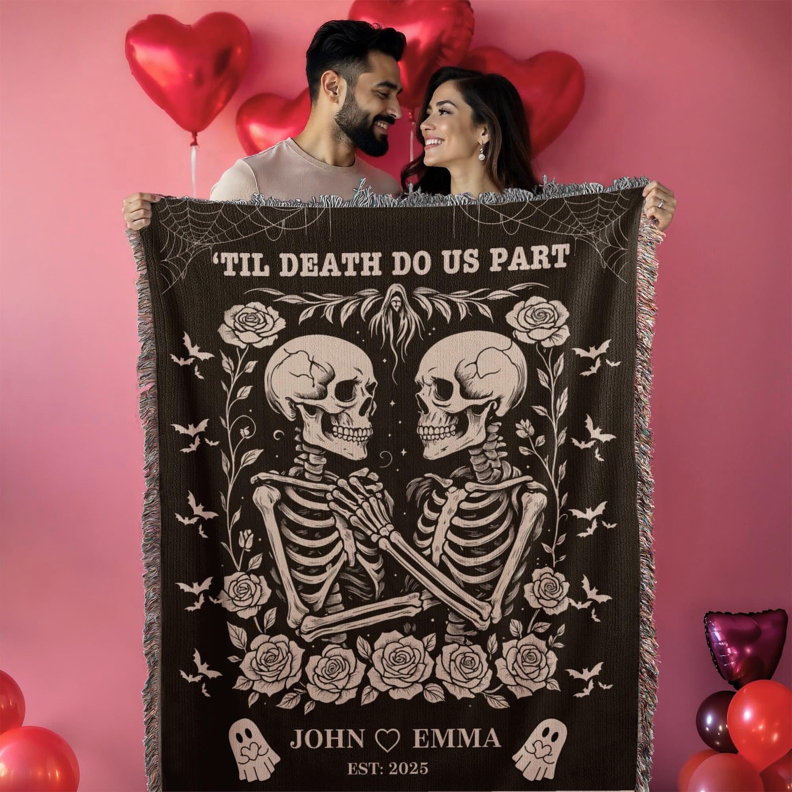 This spooky romantic blanket is a perfect gift for your husband, wife, fiancé, or any couple who shares a love that’s a little dark — but always eternal.